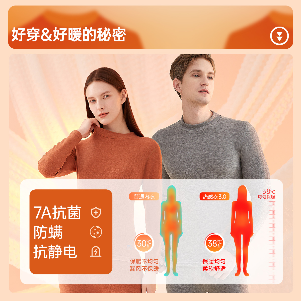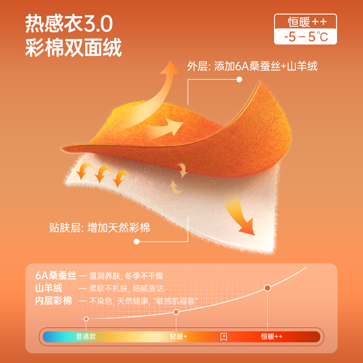 顶呱呱双面绒彩棉发热保暖内衣男女士羊毛蚕丝中厚半高领秋衣秋裤