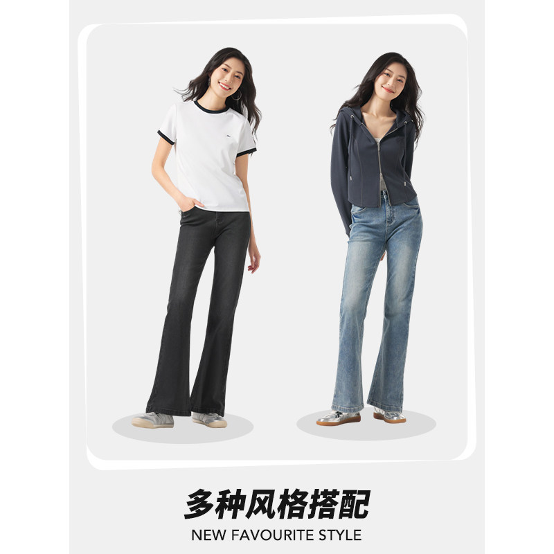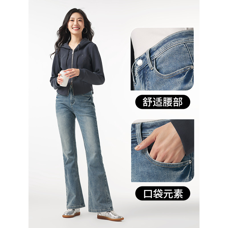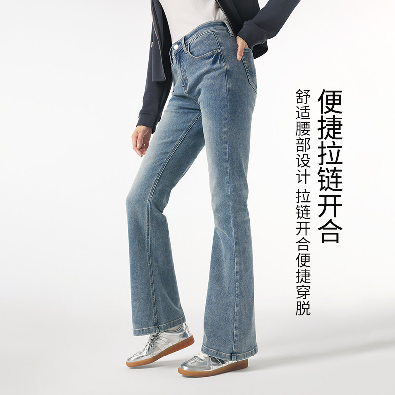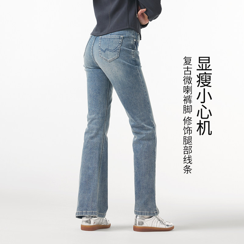 热风秋季新款女士时尚复古水洗喇叭牛仔裤垂感修身显瘦长裤