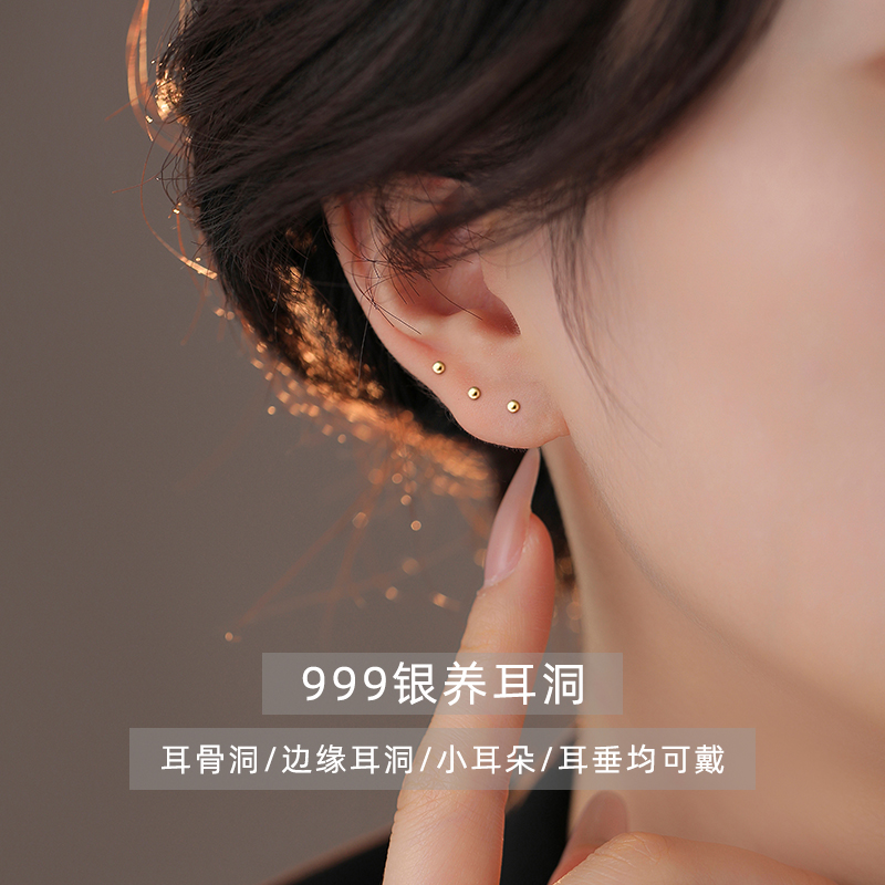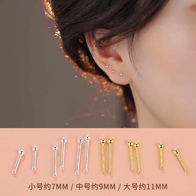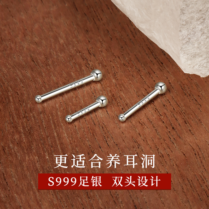999纯银耳钉女养耳洞双头耳棒耳骨钉睡觉免摘耳环防堵针耳棍耳饰