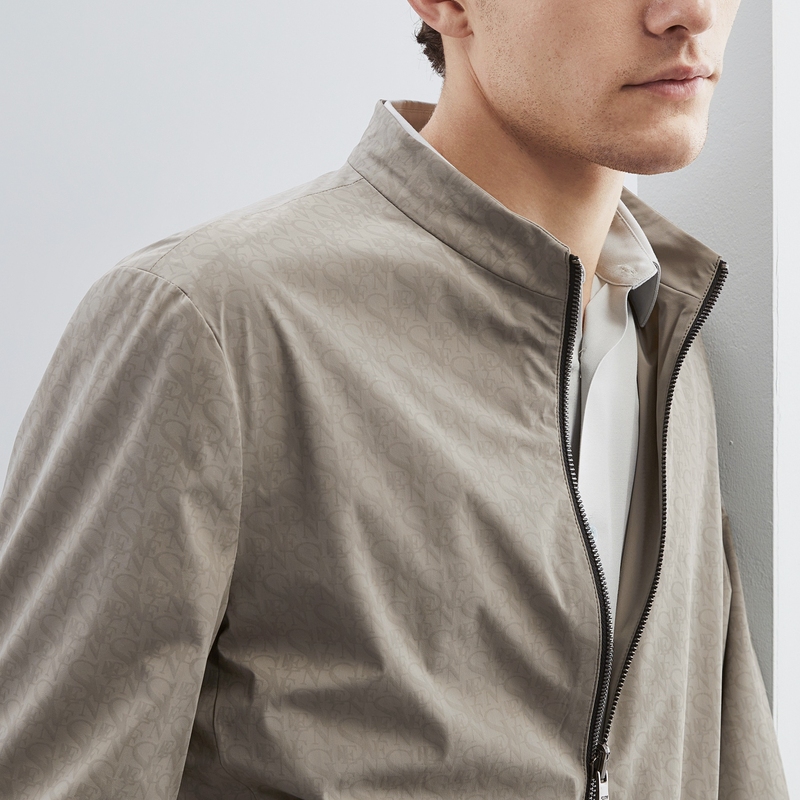 【双面穿】柒牌男装清仓立领夹克男春季商务休闲字母满印男装外套