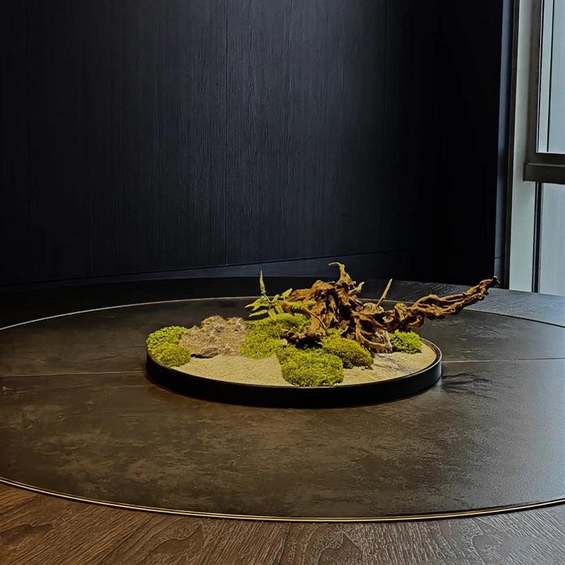 酒店大圆桌中间转盘摆件永生苔藓山石桌花微景观造景