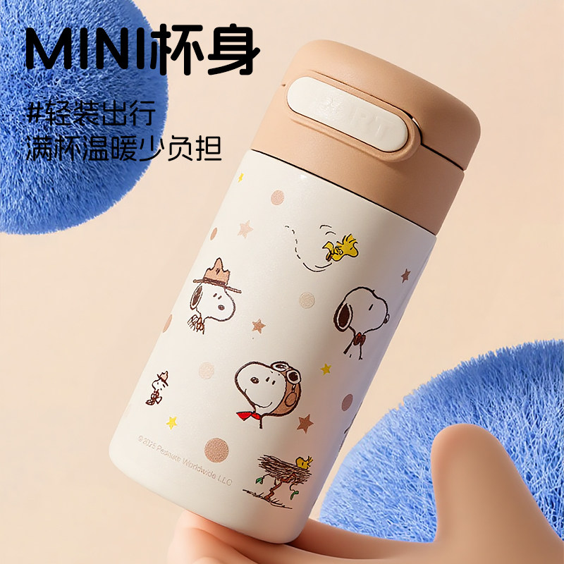 史努比迷你保温杯儿童水杯宝宝吸管杯女生高颜值小巧便携口袋杯子