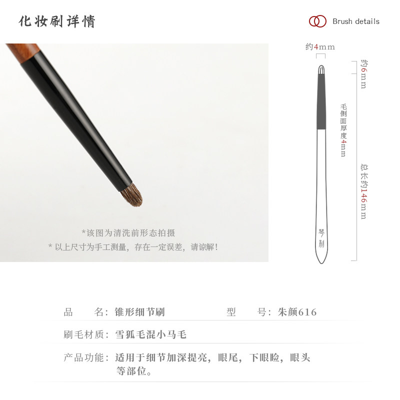 琴制化妆刷朱颜系列616锥形细节刷眼影刷眼头提亮刷动物毛一支装