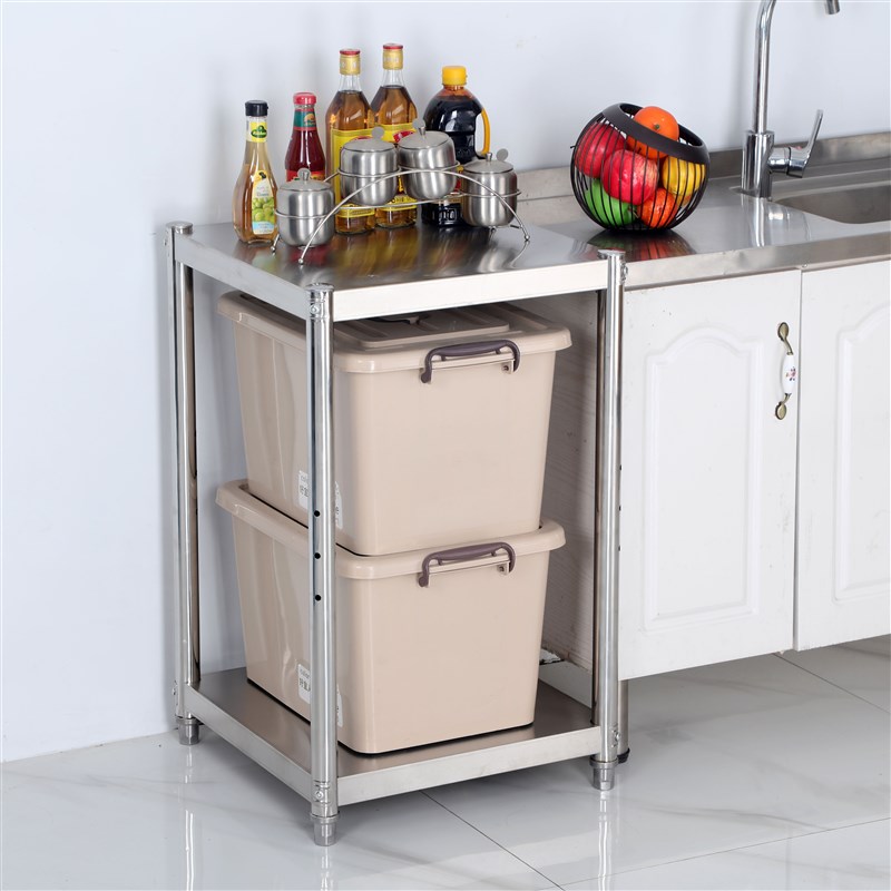 不锈钢正方形厨房置物架两层微波炉双层碗架烤箱架落地收纳小架子