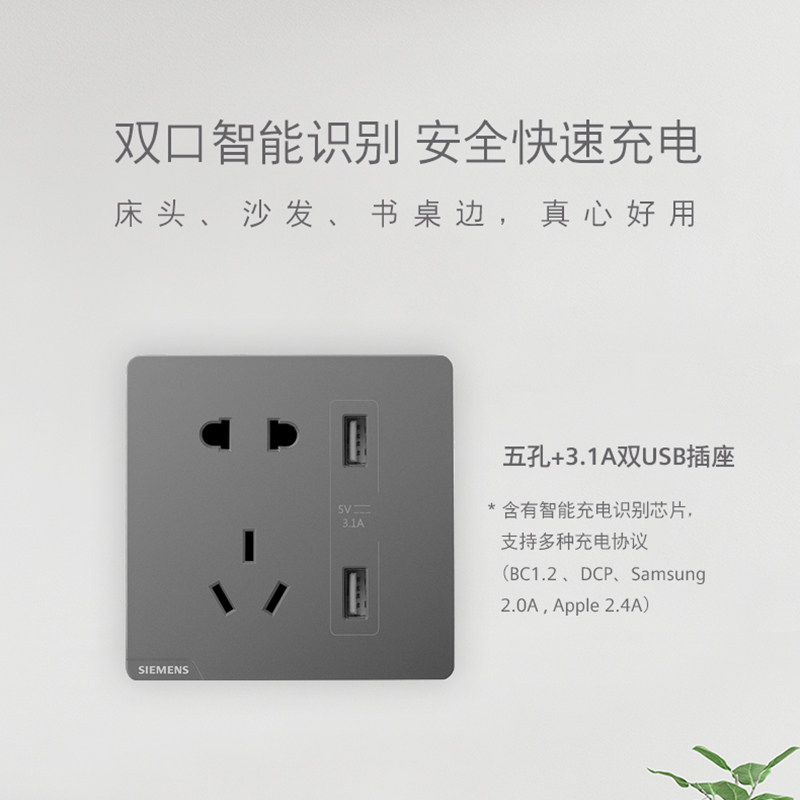 西门子无框大板开关插座皓彩系列深灰银色二三插带开关插座套餐