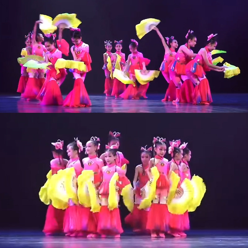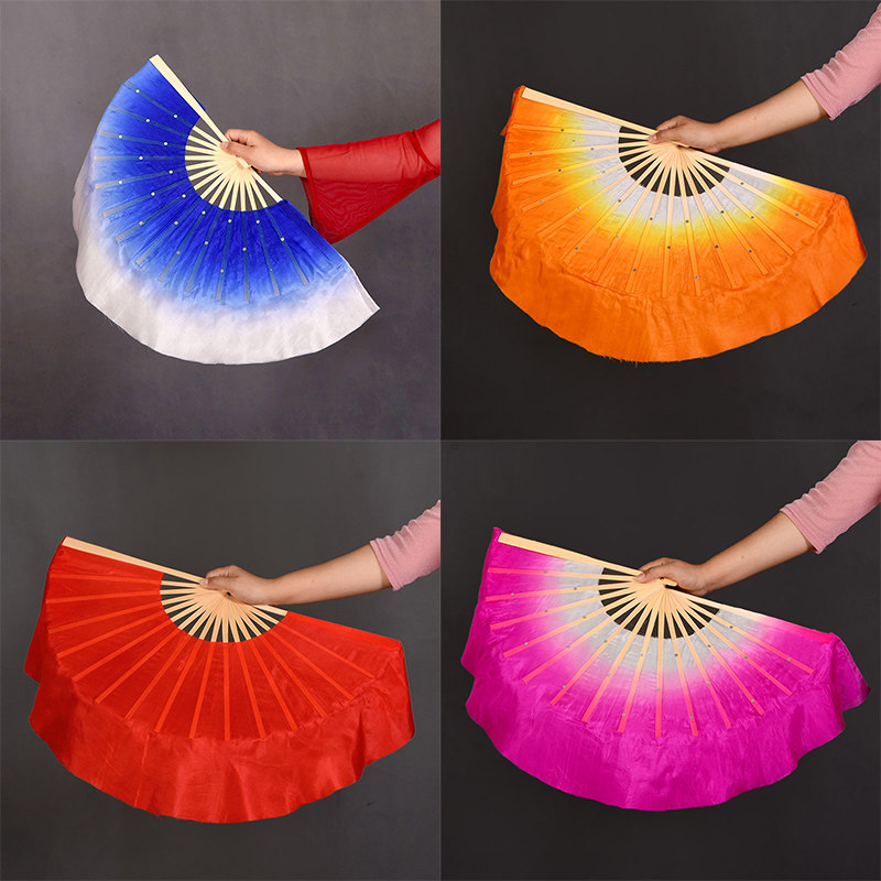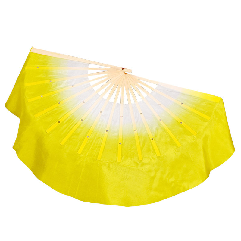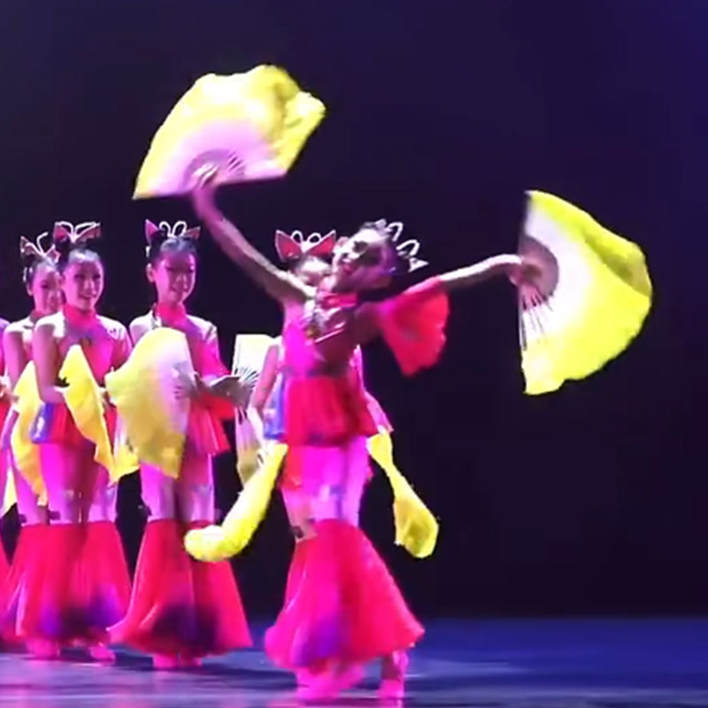 舞蹈扇子春花蝶舞儿童小学生表演专用道具跳舞扇真丝黄色渐变绸扇