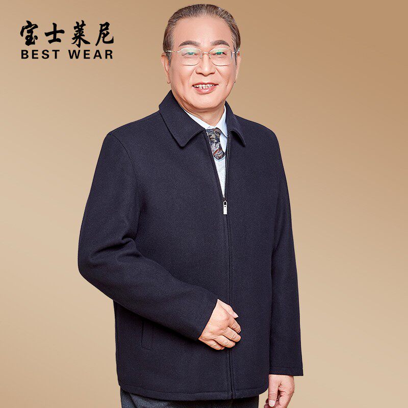 中老年男装羊毛夹克秋冬加绒加厚爸爸装外套老年人冬装宽松爷爷装