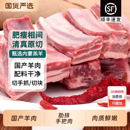 羊排肋排手把肉新鲜原切内蒙古食材羊寸排手抓排羊肉羔羊生鲜冷冻