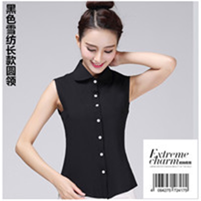 2024夏季新款无袖衬衫女翻领白衬衣职业装大码宽松显瘦尖领打底衫