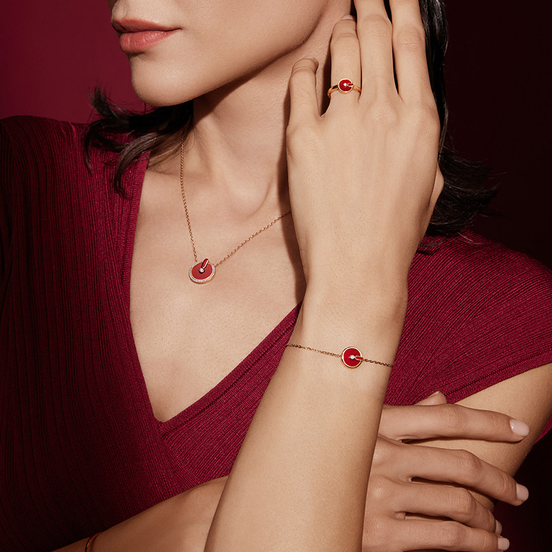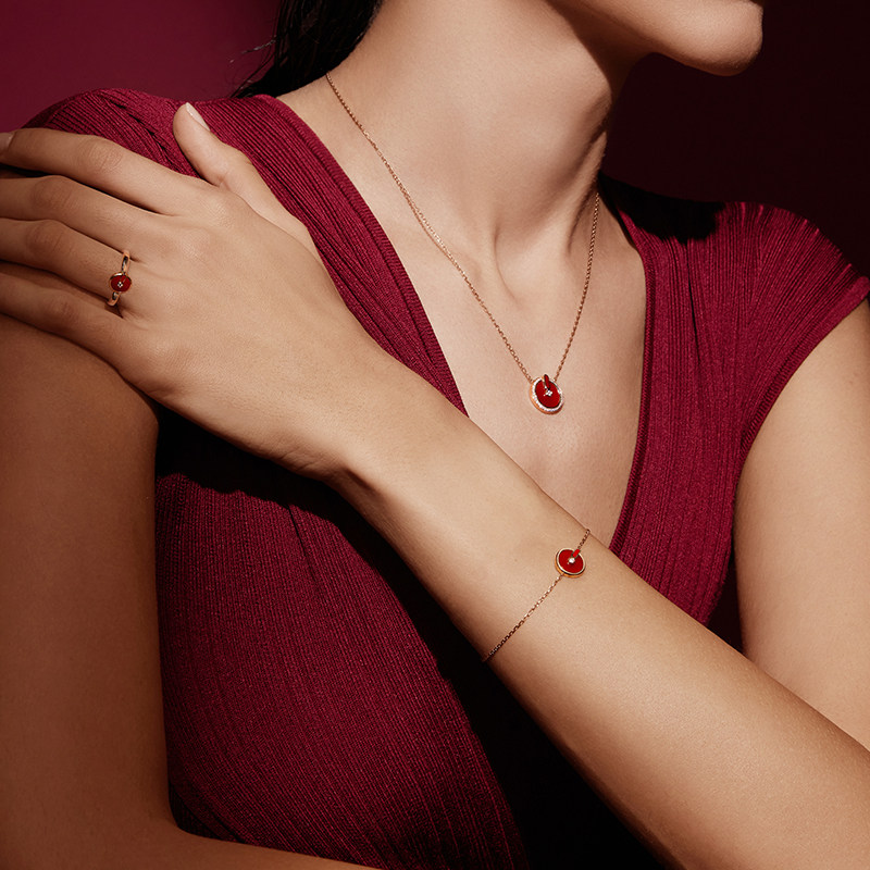 YVONLI一万李官方旗舰店上上签系列 红玛瑙18K金钻石手链新年礼物