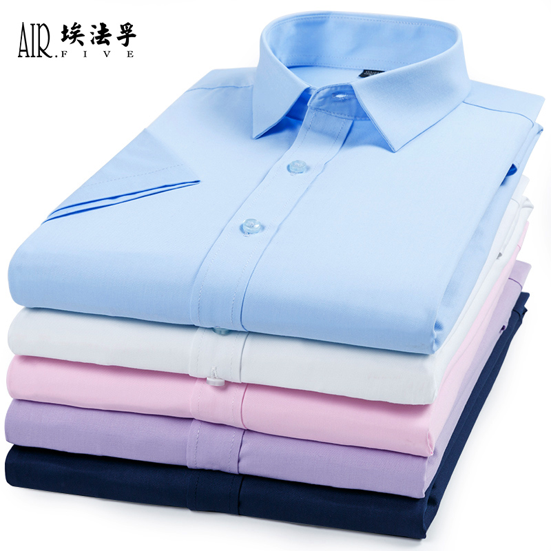AF浅蓝色免烫商务正装男士短袖衬衫大码弹力天蓝色竹纤维半袖衬衣