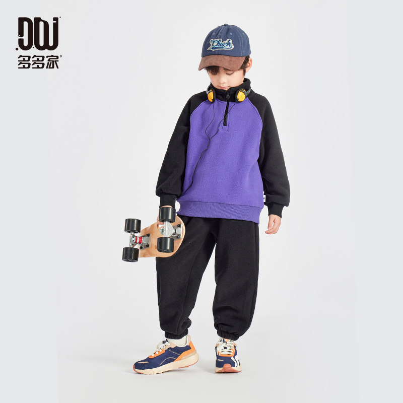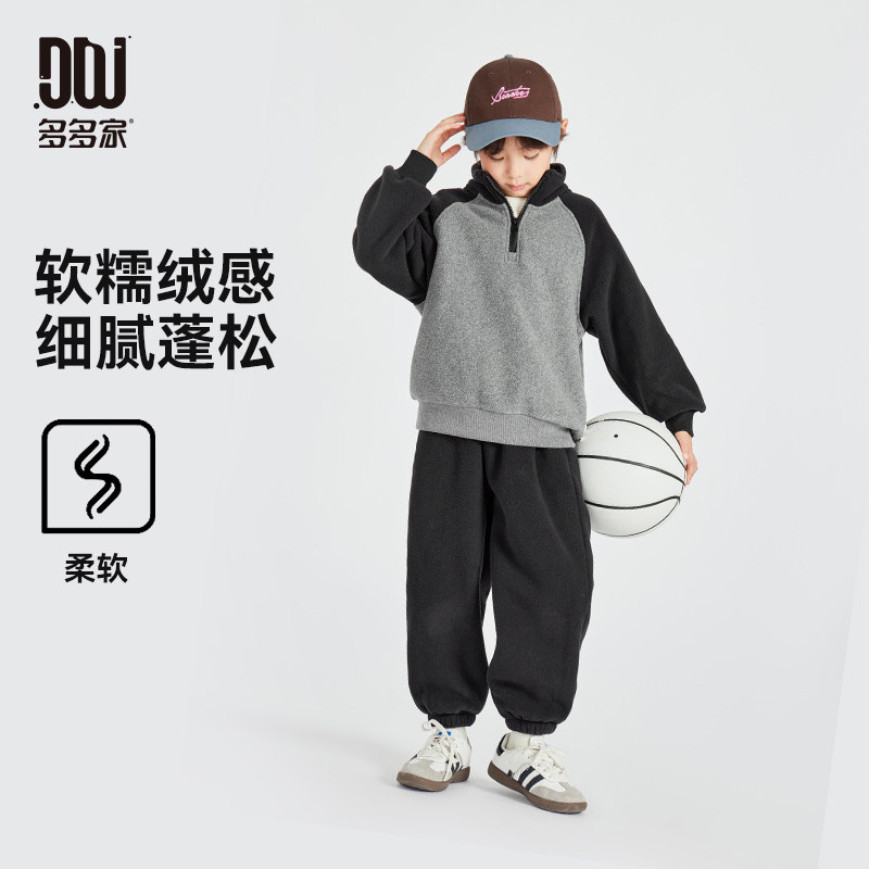 多多家男童加绒套装2025新款秋冬季儿童中大童拼色运动两件套冬装