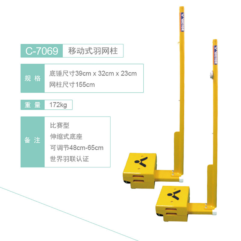 威克多VICTOR胜利7069/7047/7049移动式羽毛球网柱羽联认证比赛款