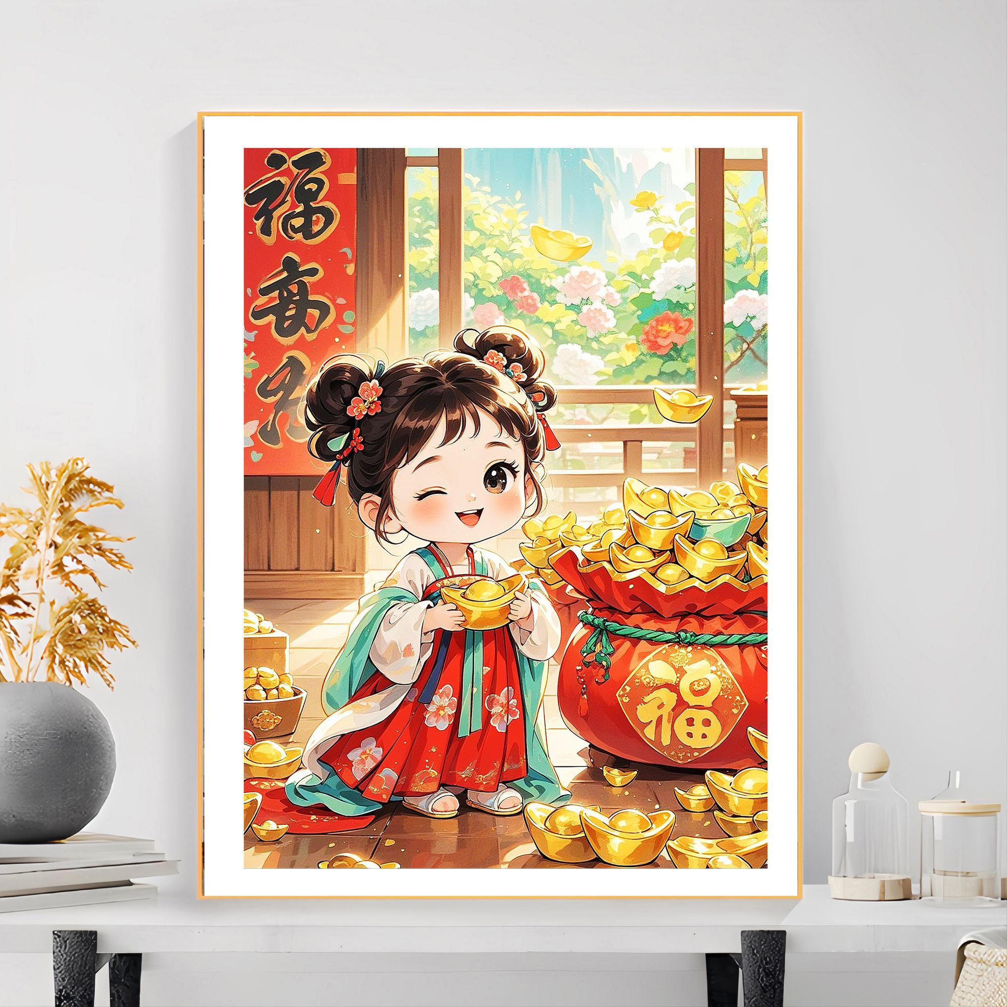 已买版权进口棉布小福星高照福袋元宝聚金十字绣自己手工绣满绣画