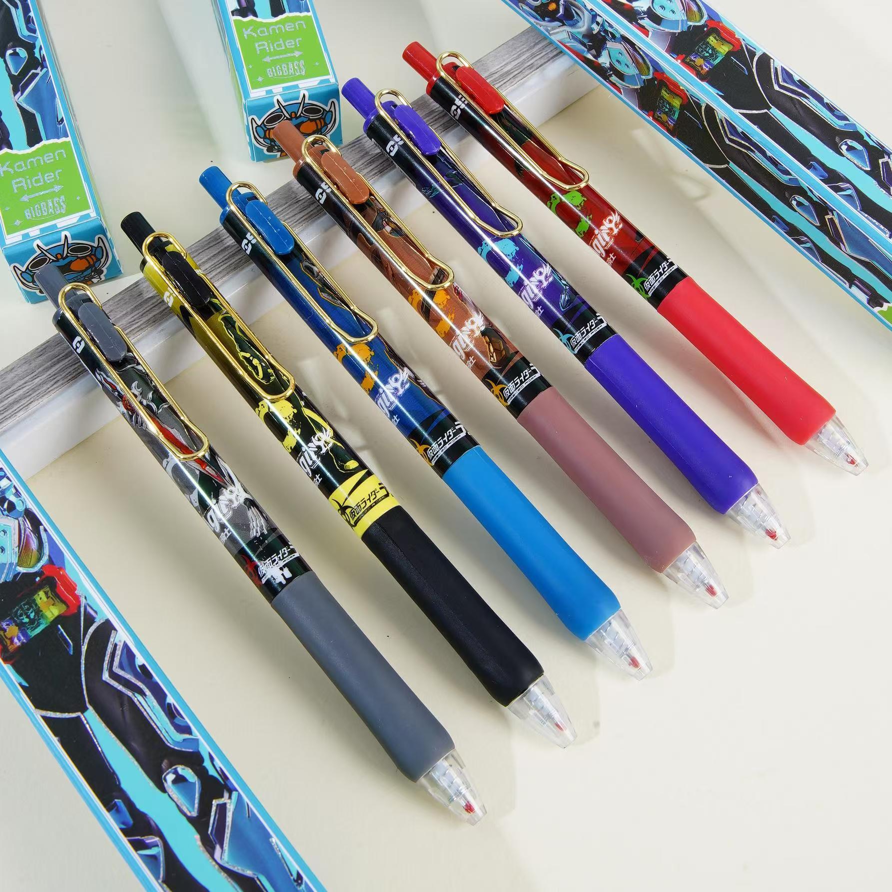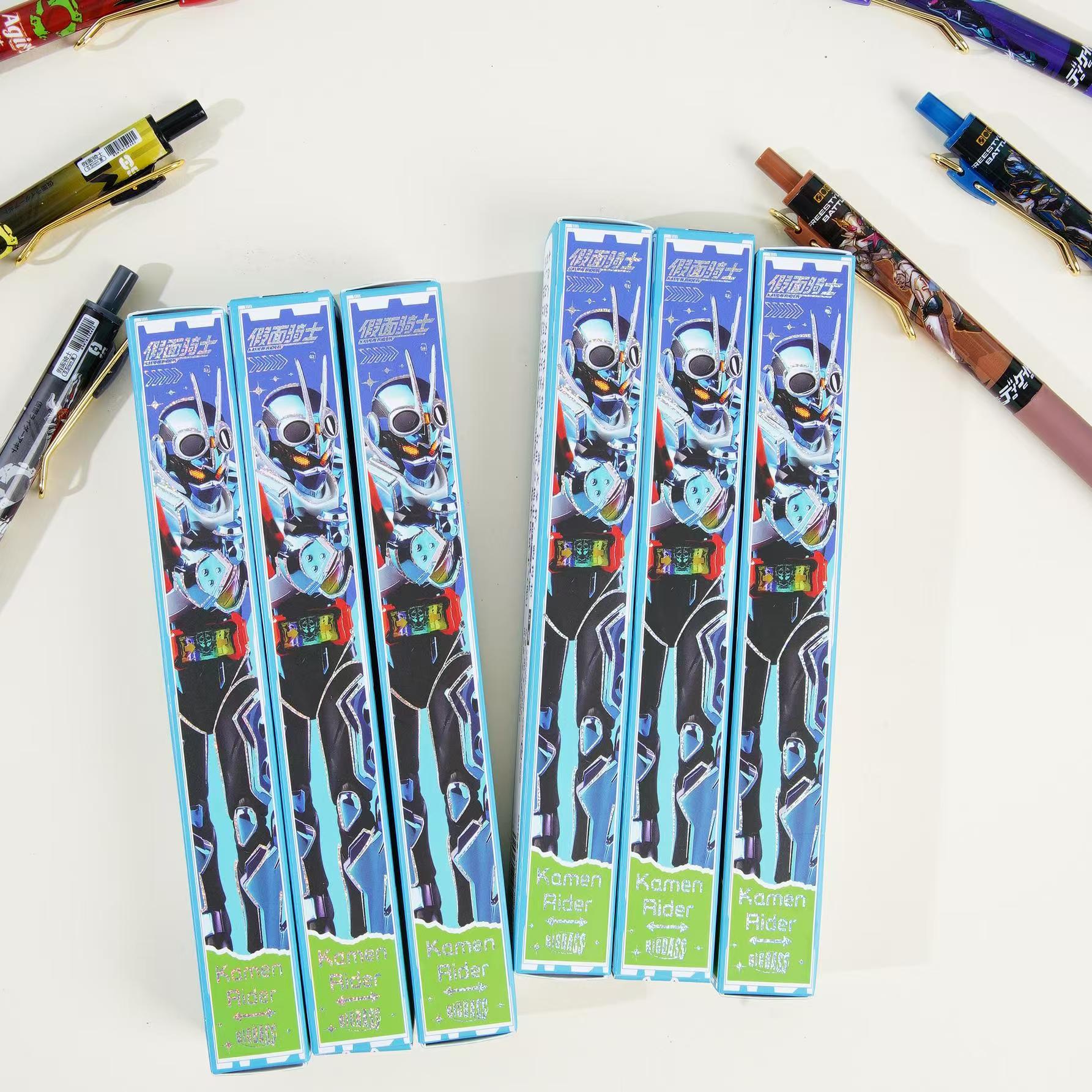 新款假面骑士盲盒按动笔学生动漫铠甲勇士签字笔高颜值黑色中性笔