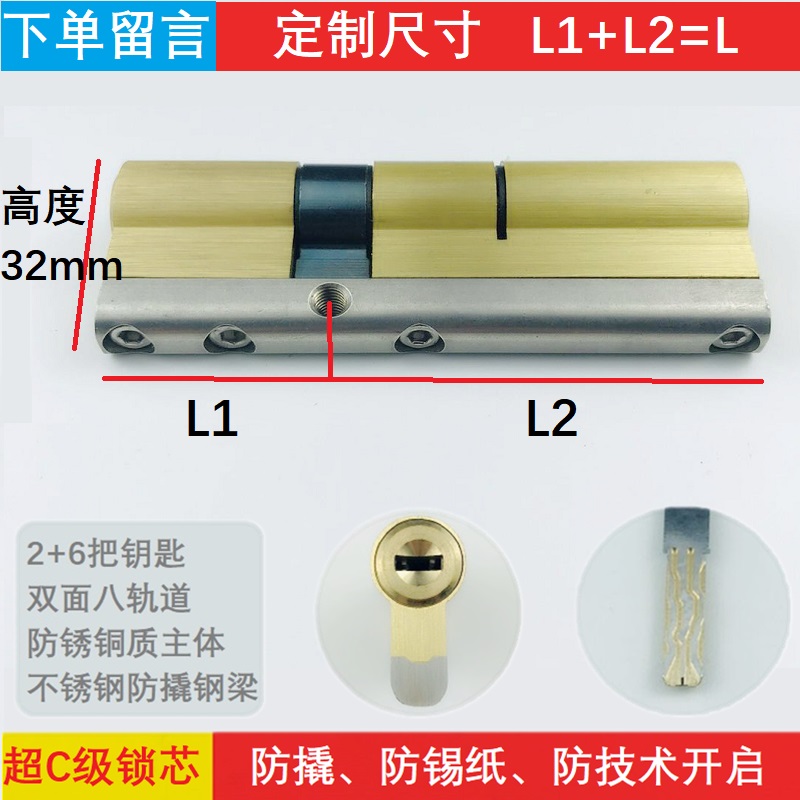高品质超全铜防爆防撬D级8轨道防盗门铁门入户门通用锁芯