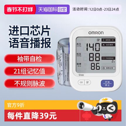 【自营】欧姆龙电子血压计U726大屏语音医用全自动老人家用上臂式