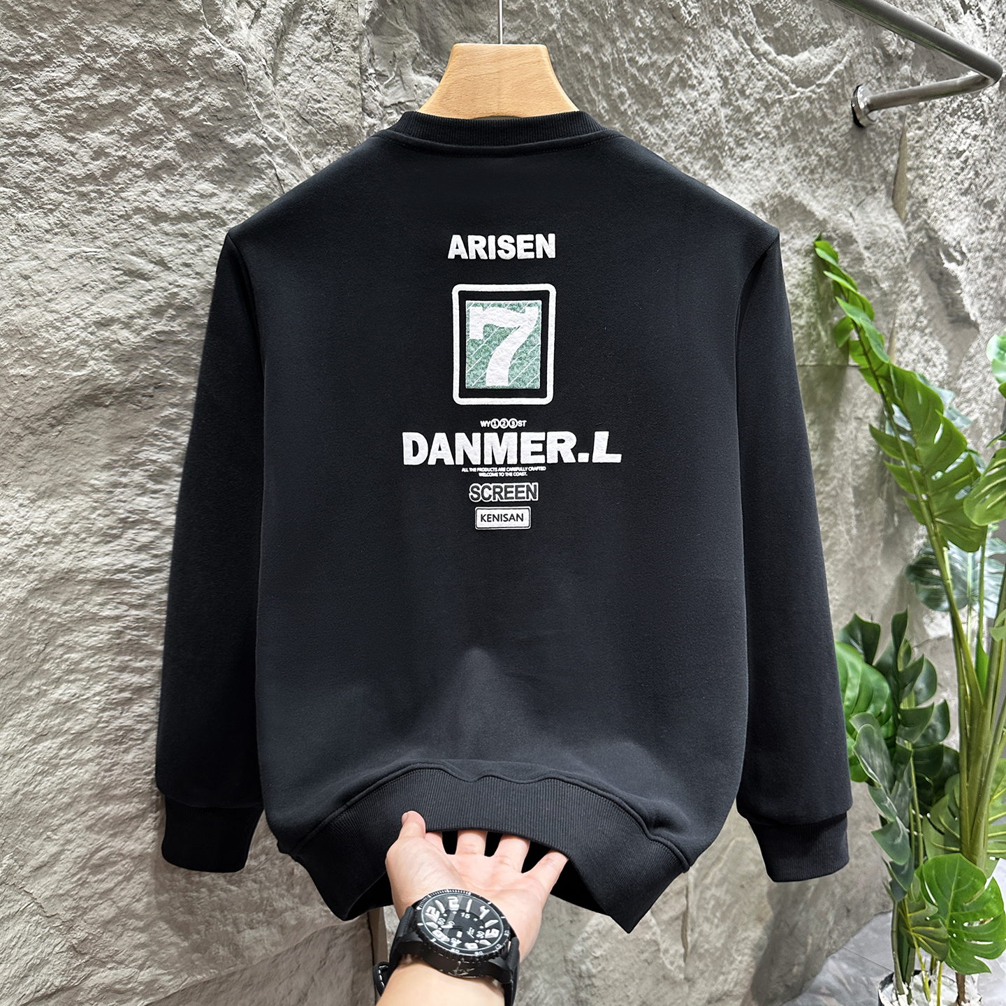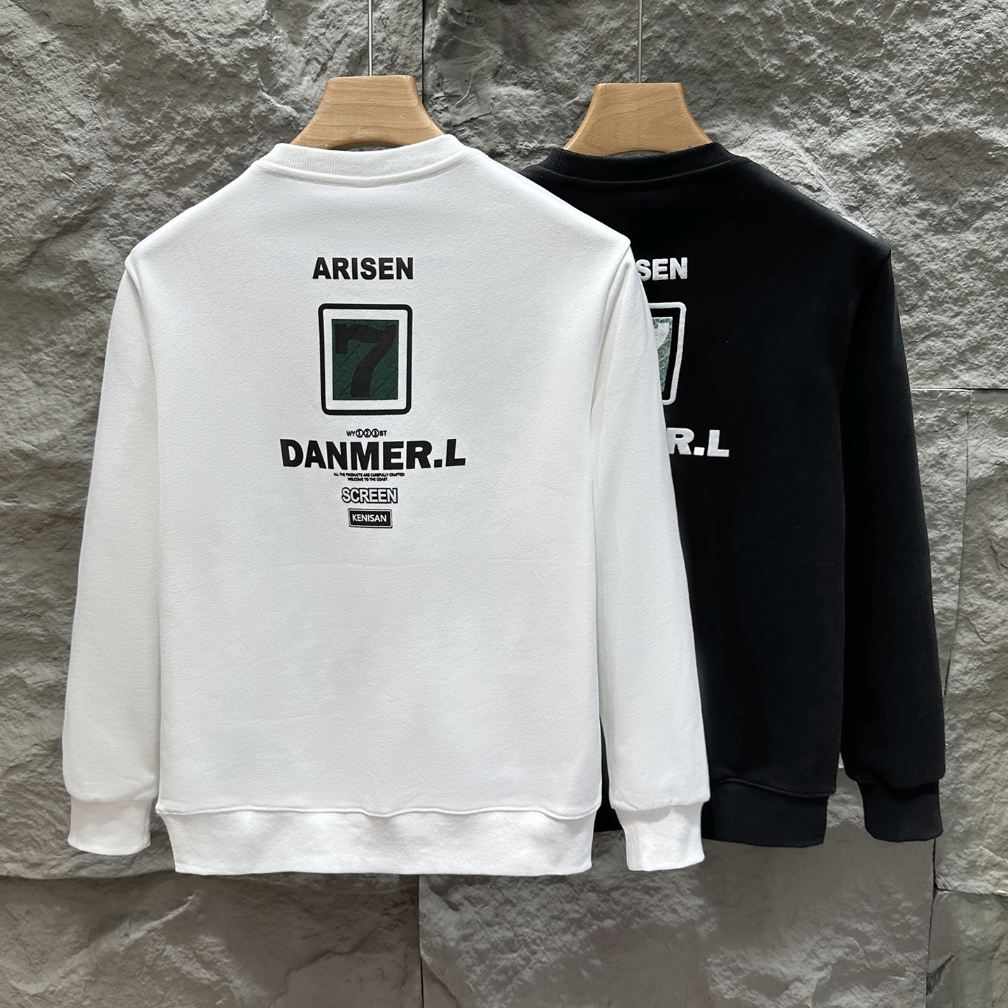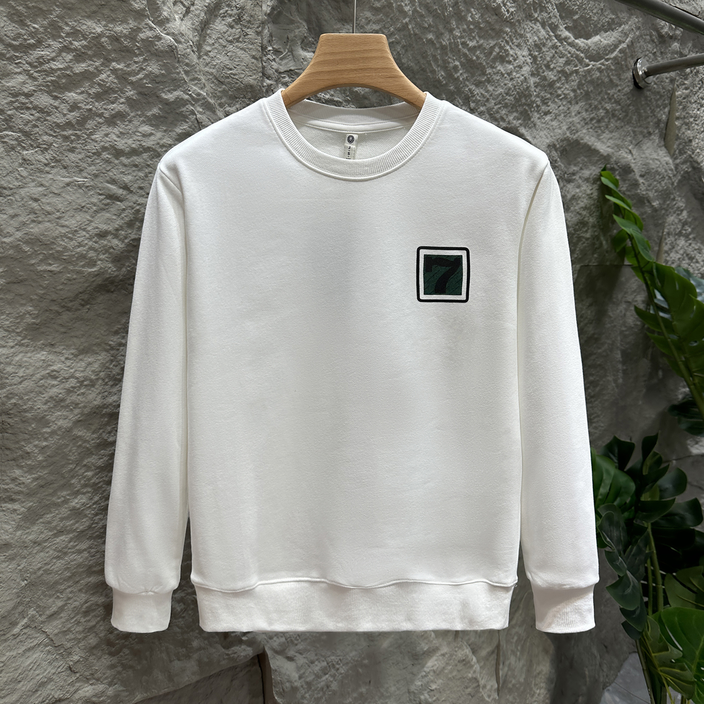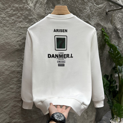 白色印花卫衣男春秋季潮流圆领套头衫宽松大码休闲长袖体恤打底衫