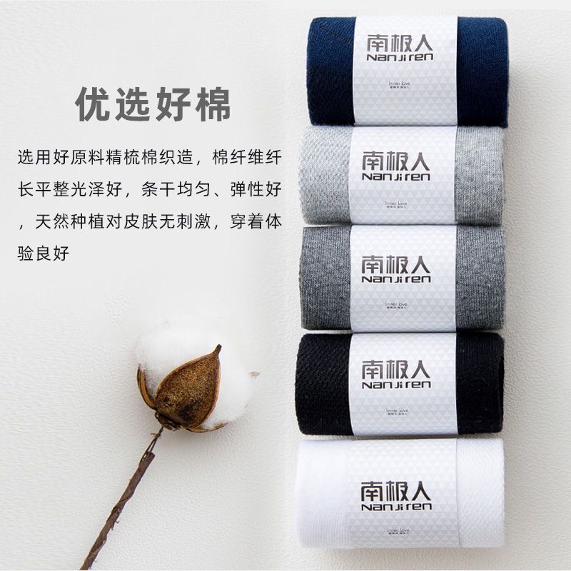 南极人袜子男士纯棉防臭吸汗中筒短袜春夏季天薄款黑色商务长男袜
