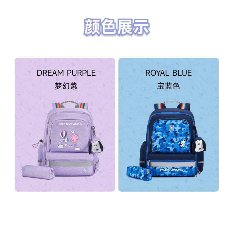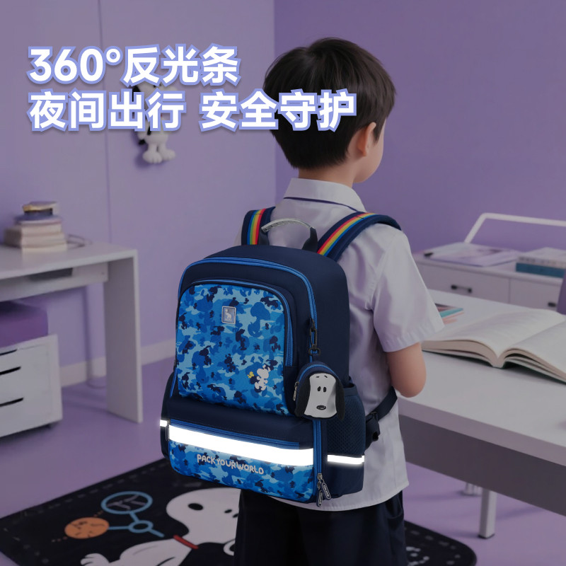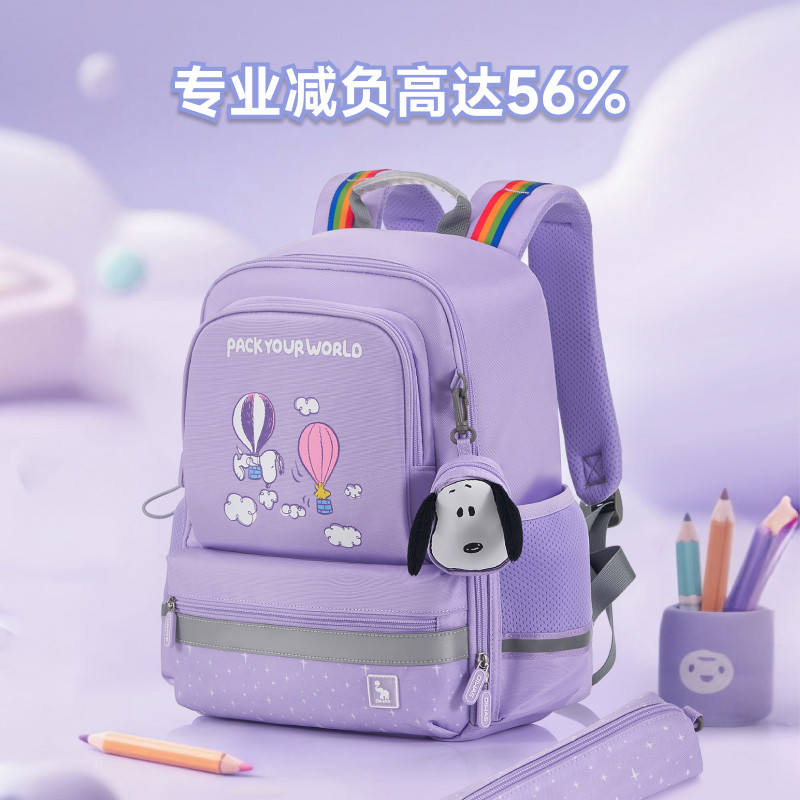 爱华仕史努比儿童书包1-6年级小学生护脊减负轻盈大容量双肩背包