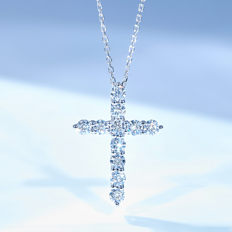 鑫万福 十字架钻石吊坠一克拉IGI证书钻石项链PT950铂金人工培育