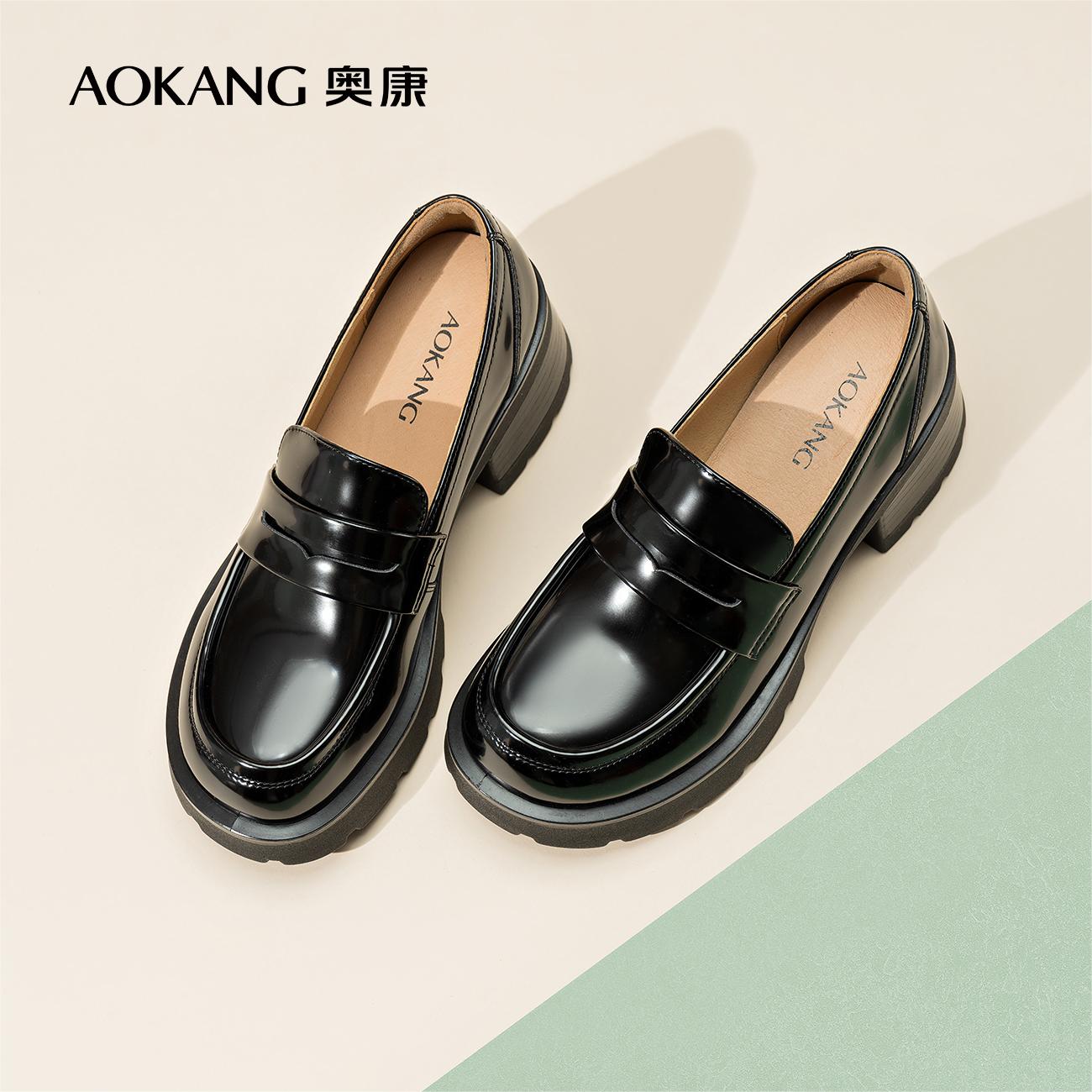 奥康女鞋 2024秋季新款英伦风复古乐福鞋一脚蹬懒人套脚舒适单鞋