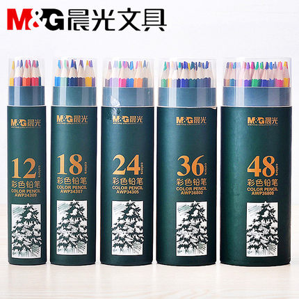 正品晨光文具AWP34309彩色铅笔绘画涂鸦彩铅木杆桶装12色18色24色36 美术用品文具学习用品