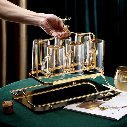 托盘玻璃杯水杯挂架沥水置物架杯架水杯架创意家用收纳杯子架倒挂