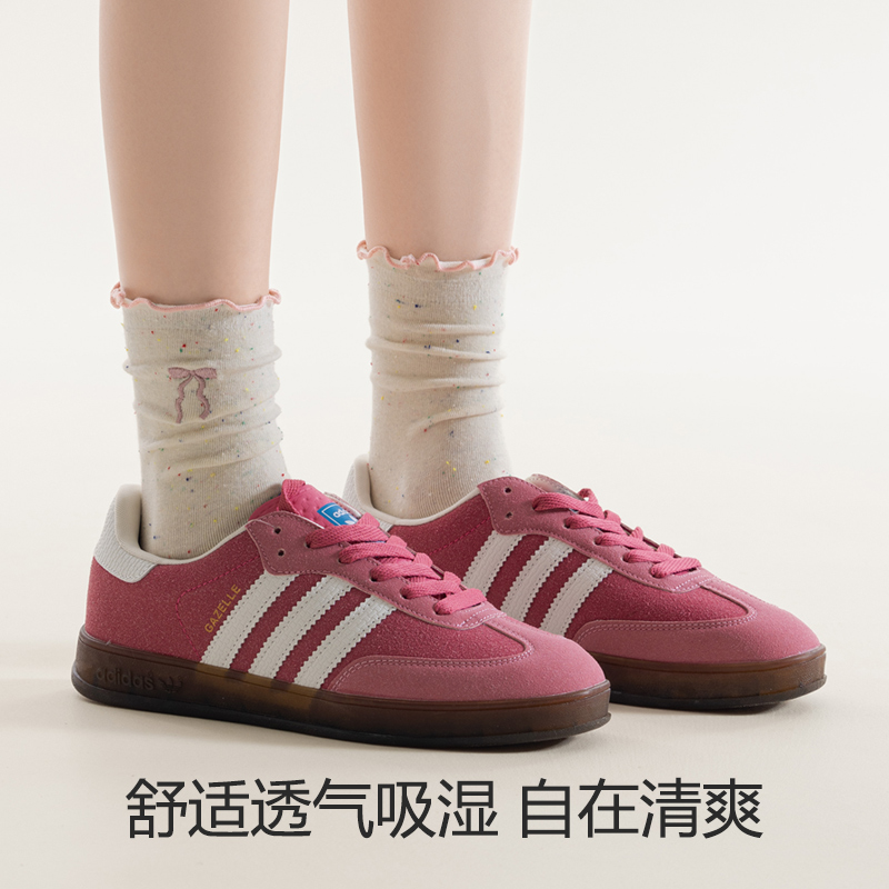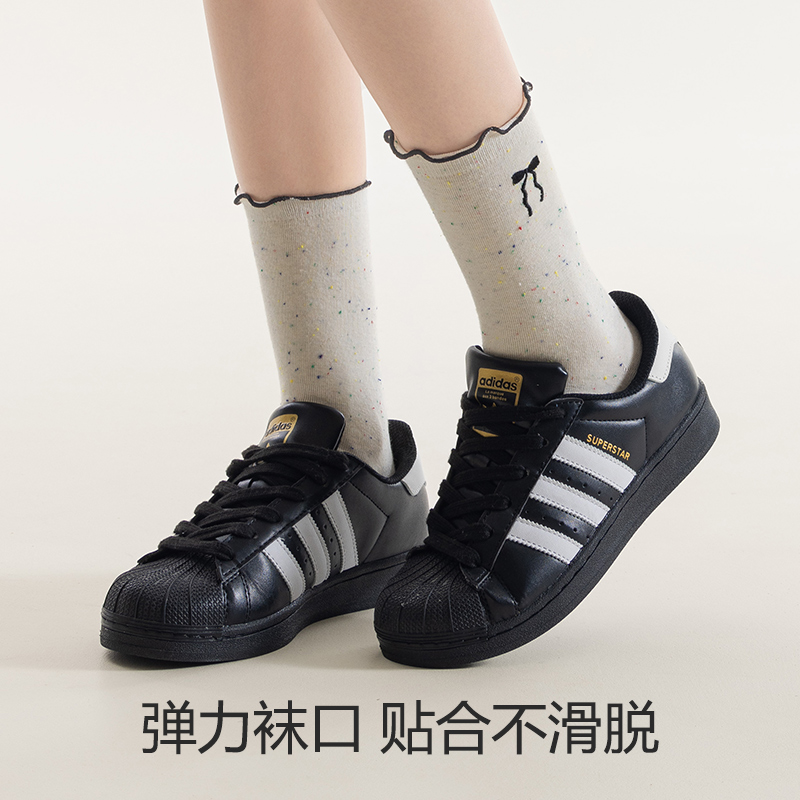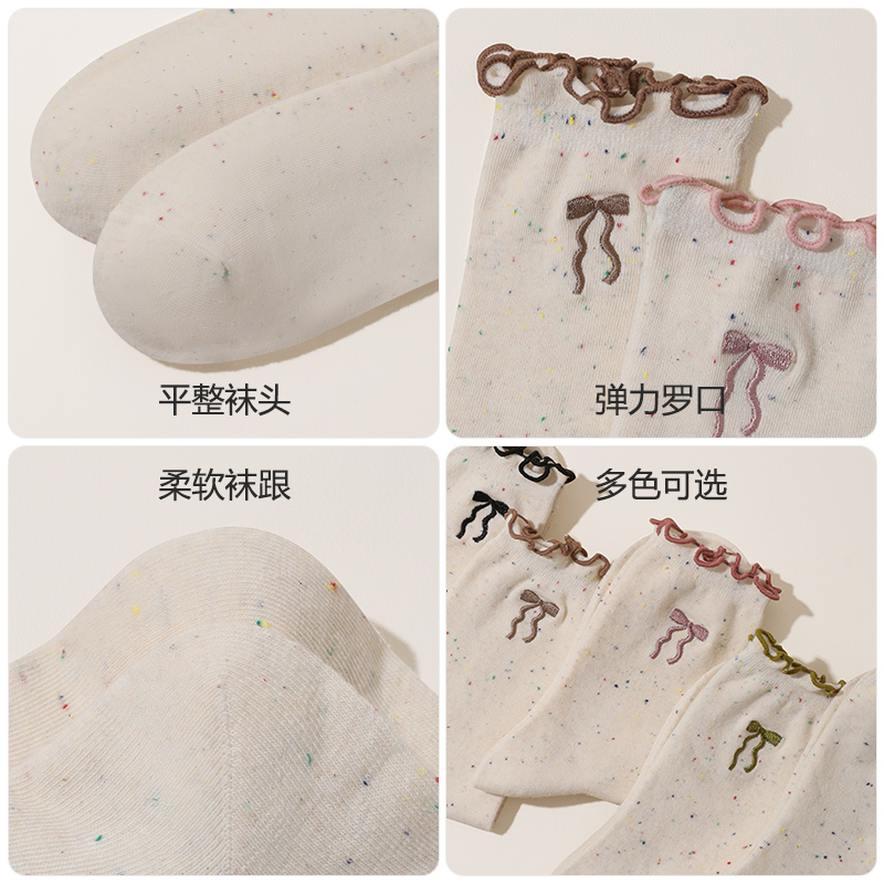 花边袜子女纯棉中筒袜夏季薄款点子纱可爱木耳边蝴蝶结堆堆袜春秋