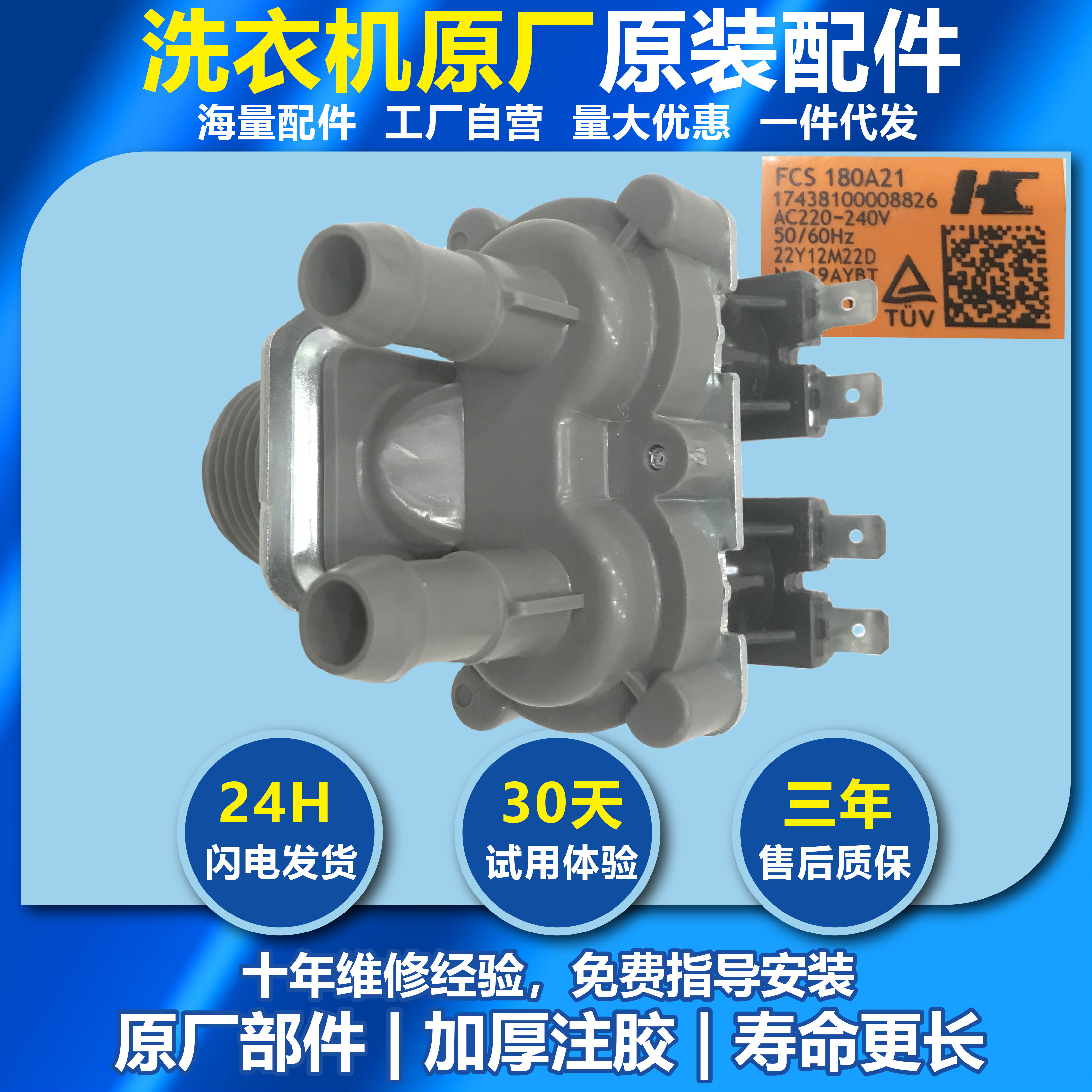 适用美的小天鹅全自动滚筒洗衣机进水阀电磁阀开关原装配件大全
