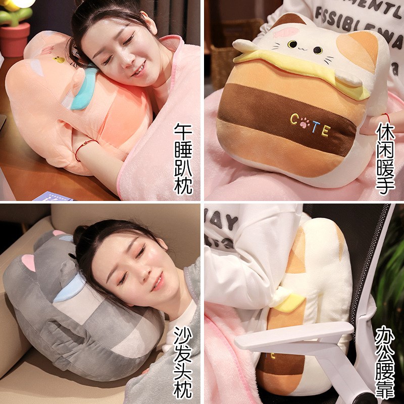 卡通暖手抱枕被子两用q办公室午睡枕空调毯子三用合一汽车车载靠