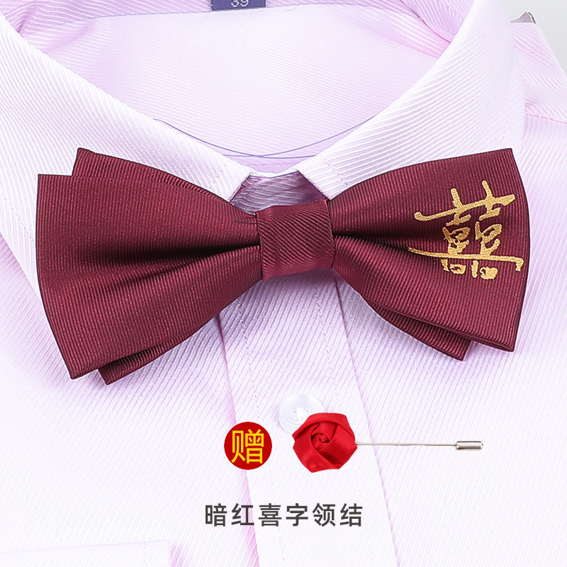 暗红喜字领结套装伴郎新郎衬衫结婚婚礼英伦韩版蝴蝶结女
