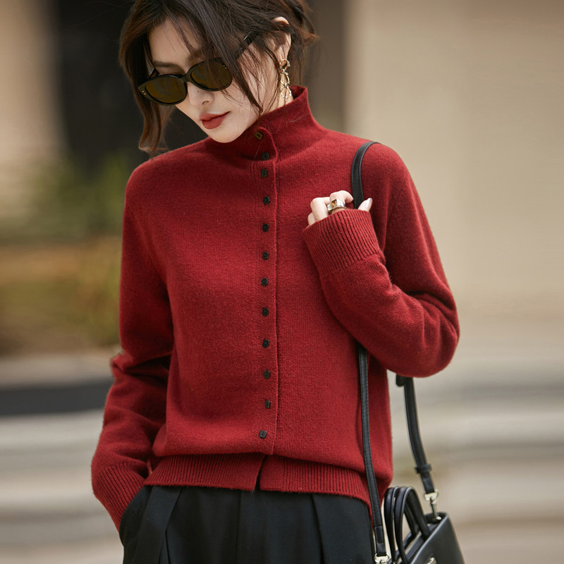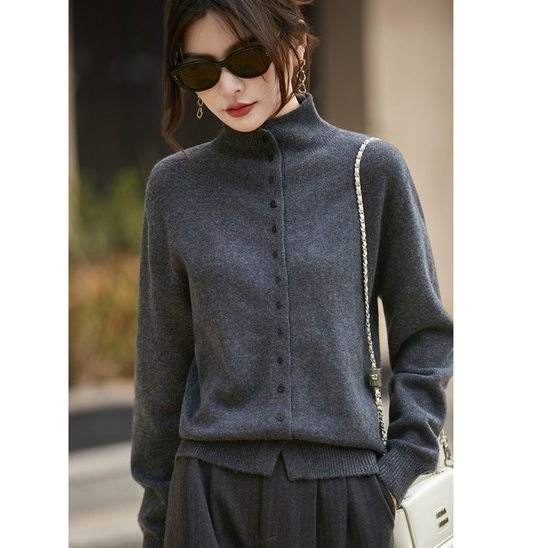 灰色高领减龄针织开衫外套女2025新款秋冬外穿毛衣宽松外搭毛衣