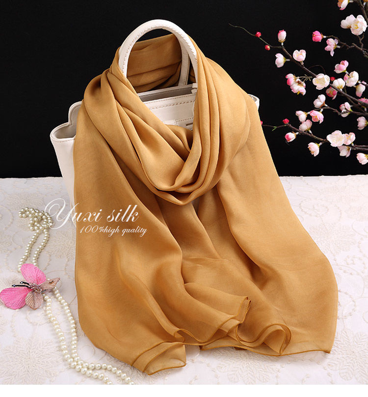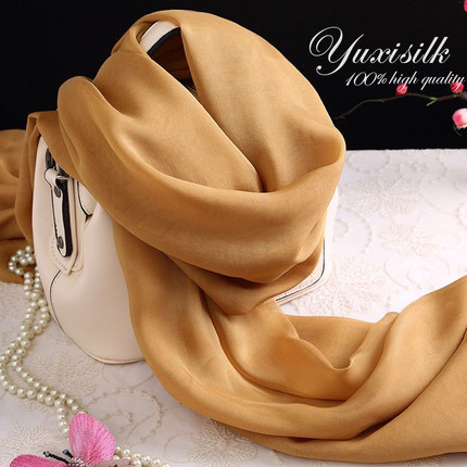 玫瑰金色纯色桑蚕丝长款真丝丝巾披肩女薄纱巾春秋冬夏季丝绸围巾