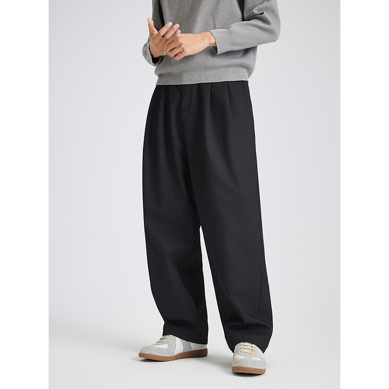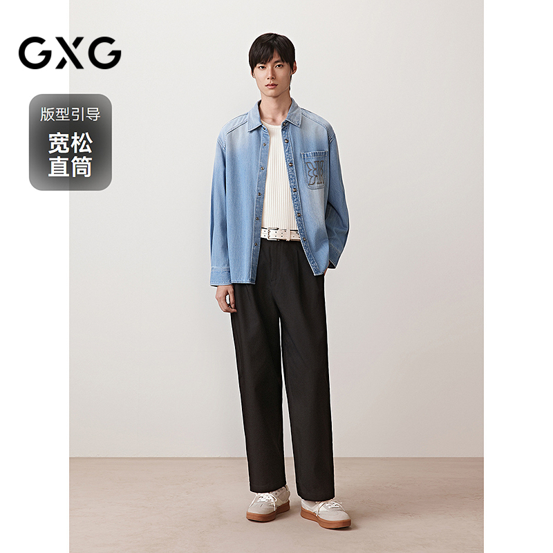 GXG男装 斜纹褶皱西装裤通勤男休闲裤宽松弯刀长裤 2025秋季新品