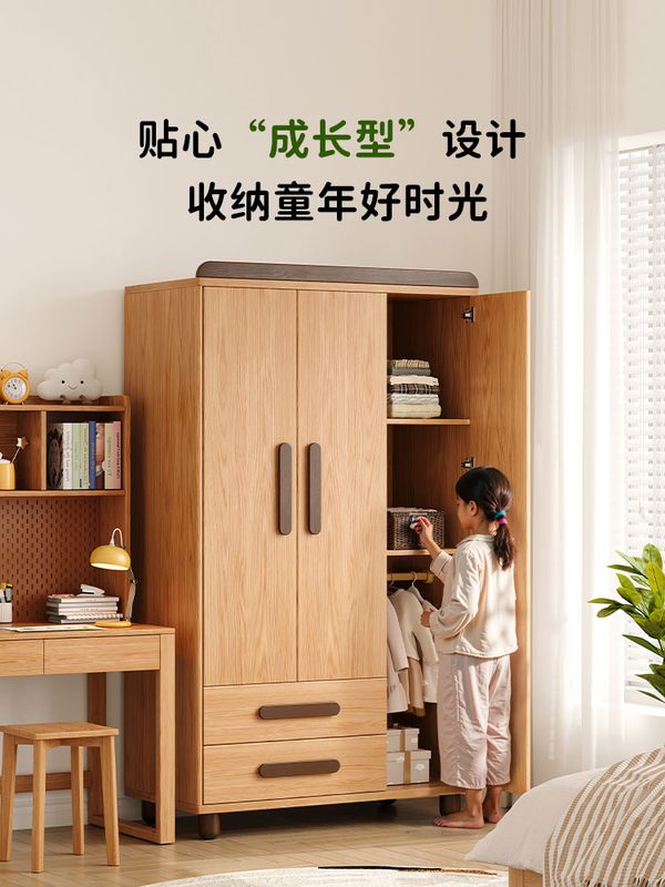 全实木橡木儿童卧室衣柜原木女童男风房间小型女孩衣橱男孩儿童房