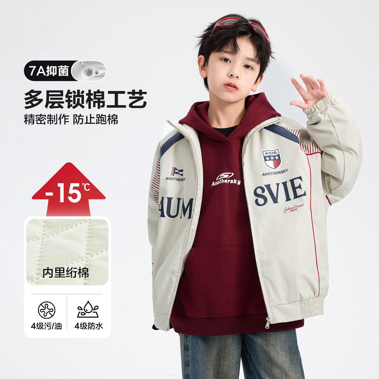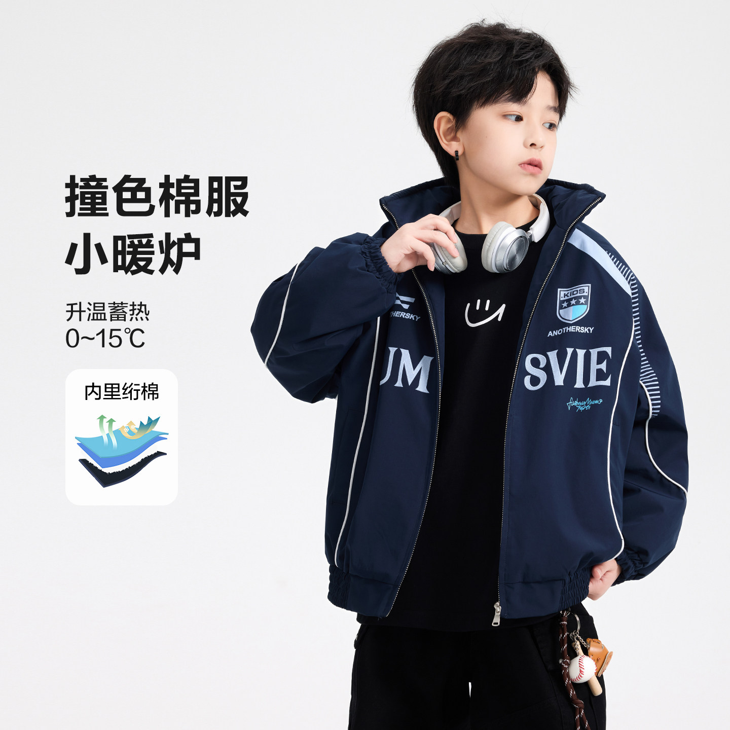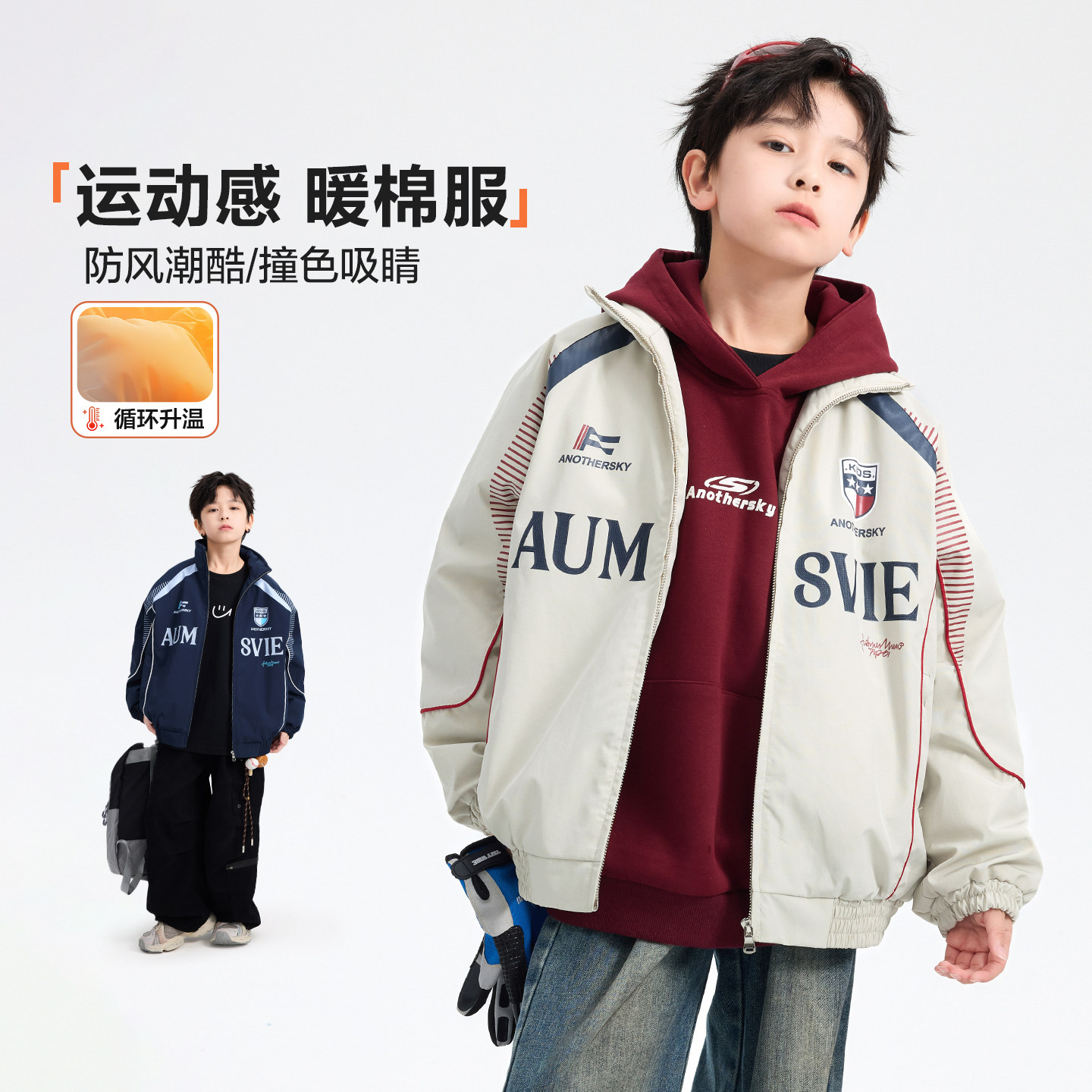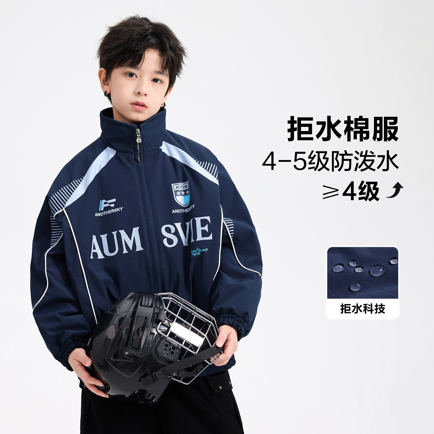 男童冬季美式撞色防水运动棉服2025新款青少年儿童夹棉加厚外套潮