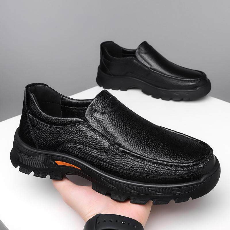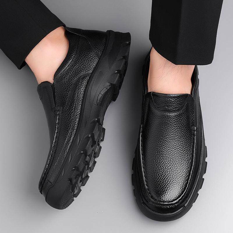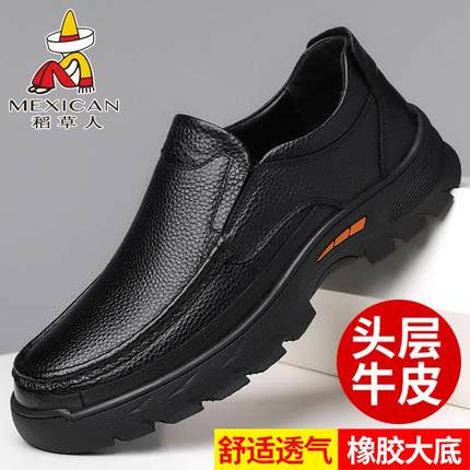 稻草人皮鞋男真皮乐福一脚蹬新款商务休闲中老年爸爸防滑软底男鞋