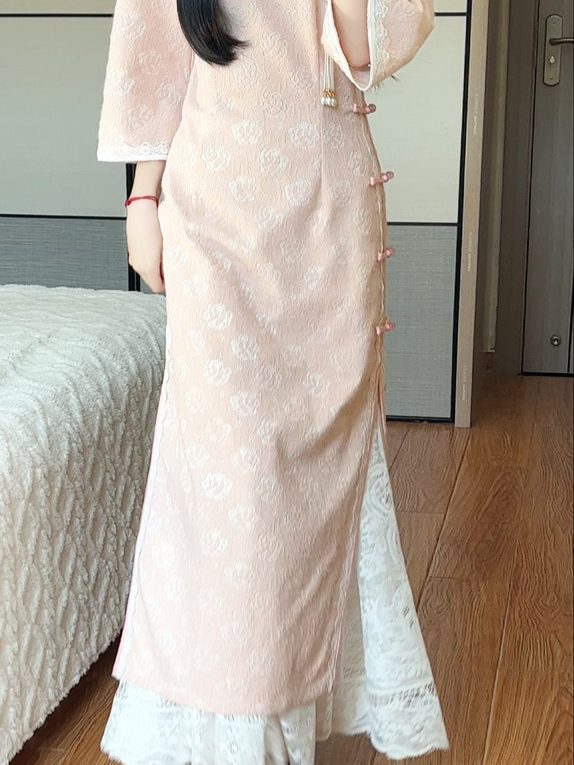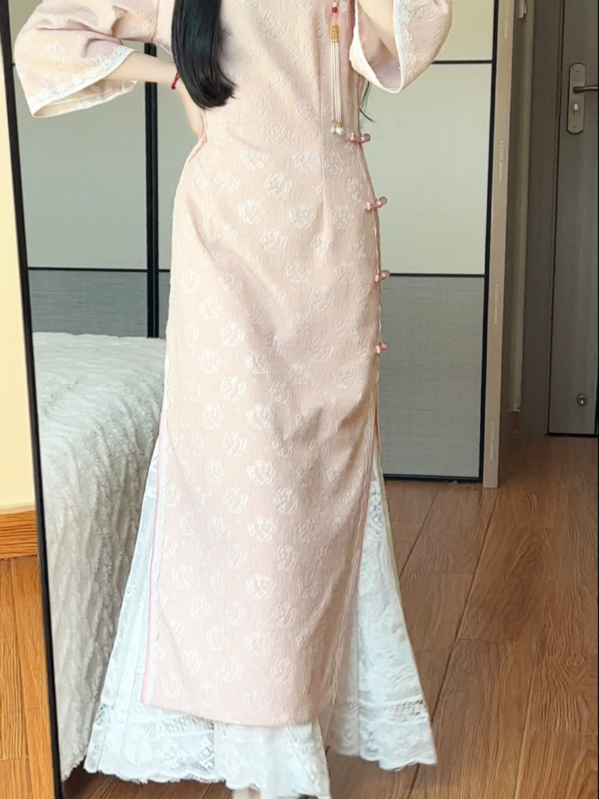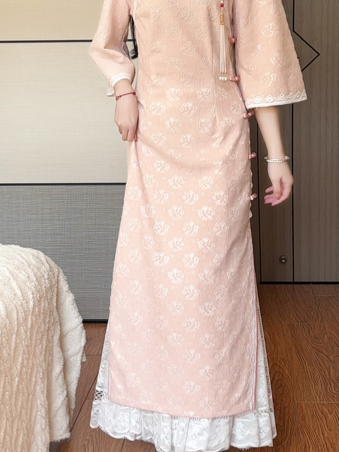 抹茶麻薯2026年春季新款旗袍衬裙白色打底内搭蕾丝纯色大摆半身裙