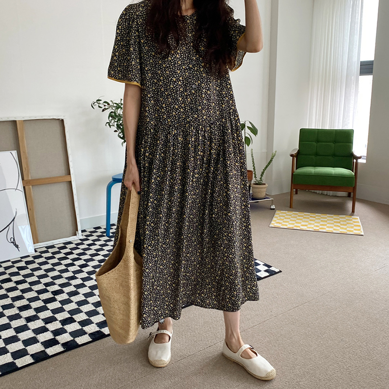 复古长裙宽松小花朵短袖