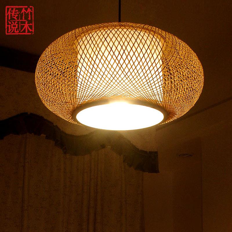 竹灯中式吊灯竹编田园饭厅灯日式榻榻米茶室客厅书房灯笼覆古灯具