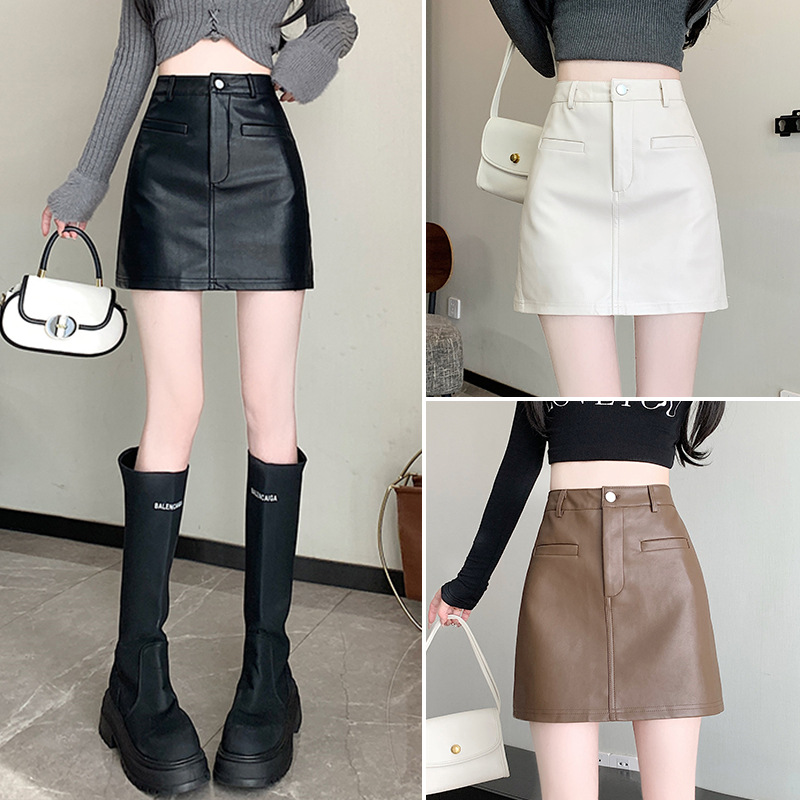 咖色pu皮裙半身裙女秋冬新款小个子高腰包臀裙防走光a字短裙