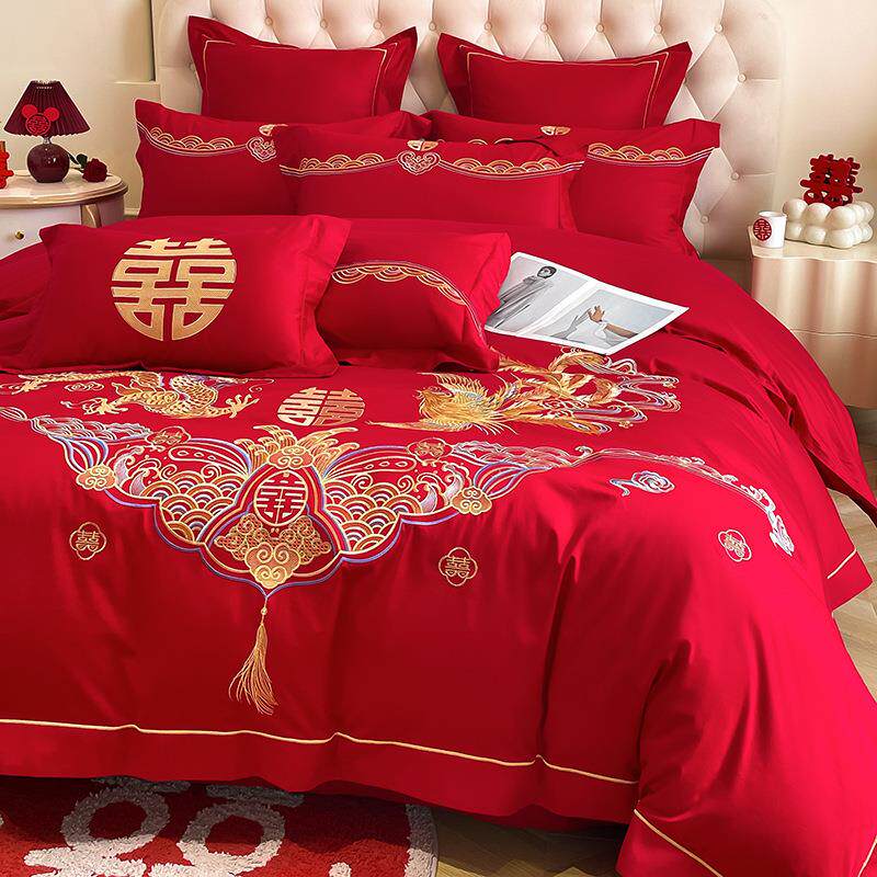 高档结婚被套四件套被磨毛床单龙凤喜床上用品大婚庆棉红色刺绣
