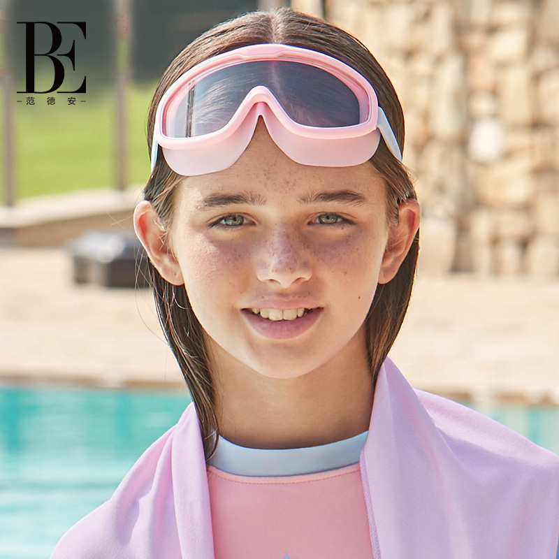 BE范德安儿童大框泳镜男童女童防水防雾高清时尚撞色游泳专用装备