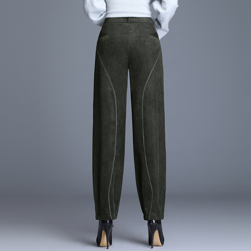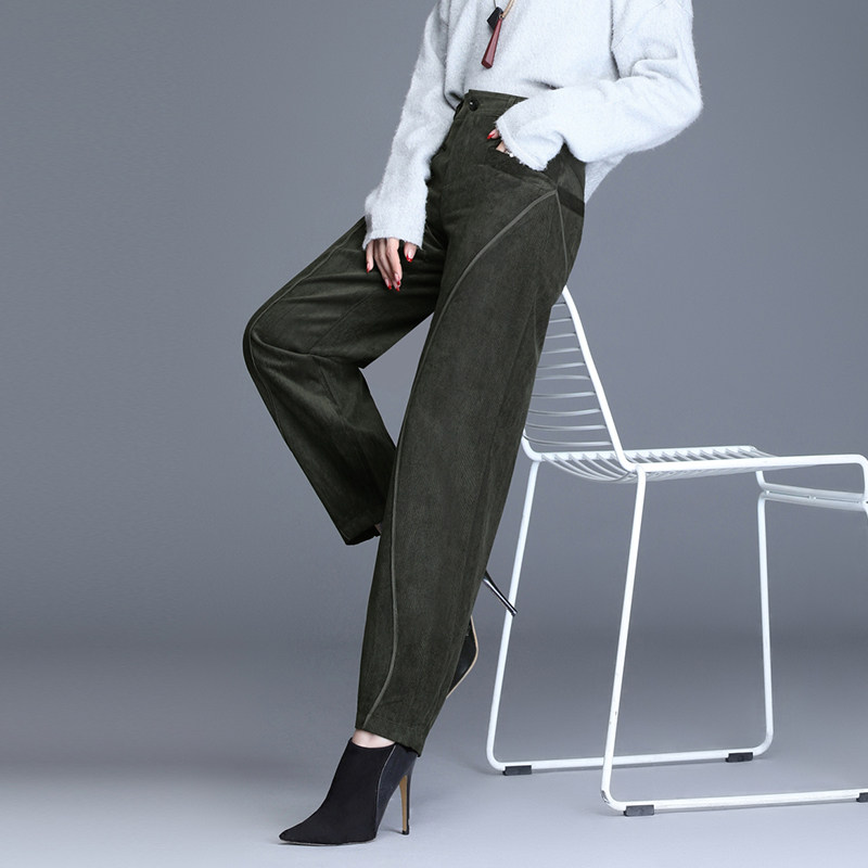 春季新款大码灯芯绒哈伦裤女条绒灯笼裤高腰束脚宽松休闲老爹裤女