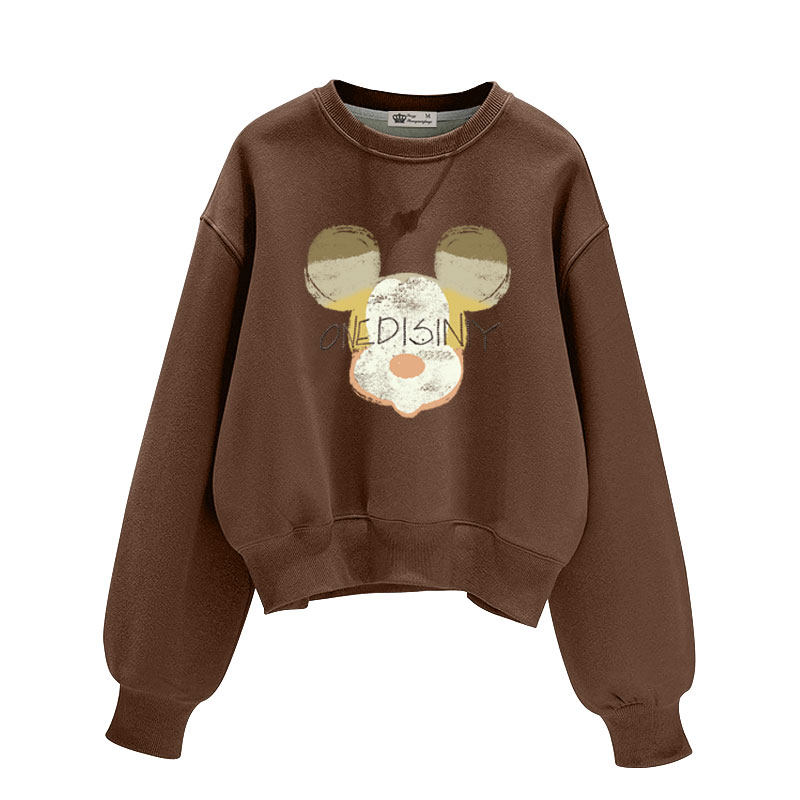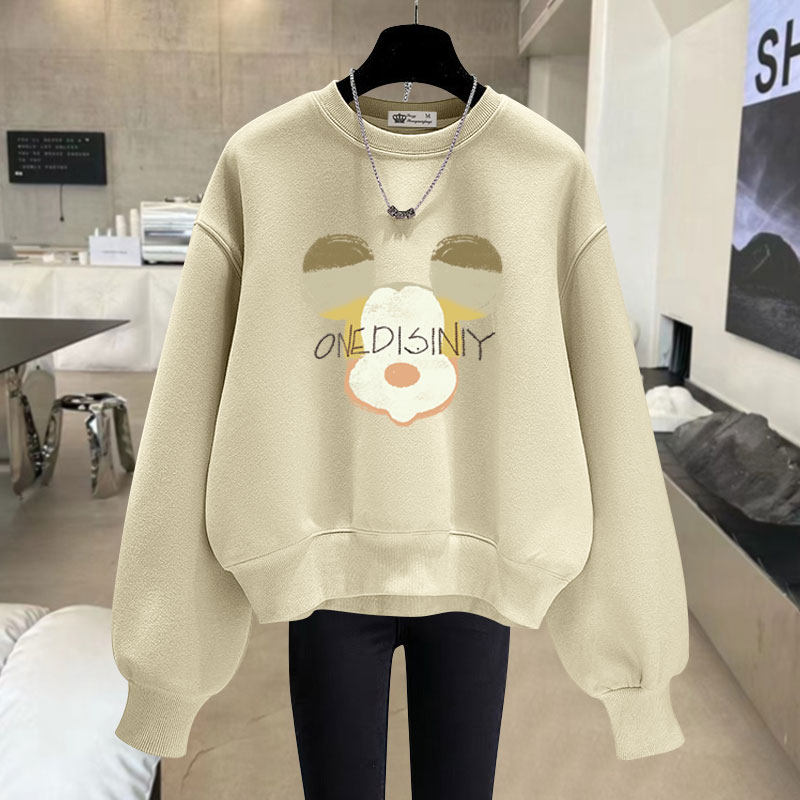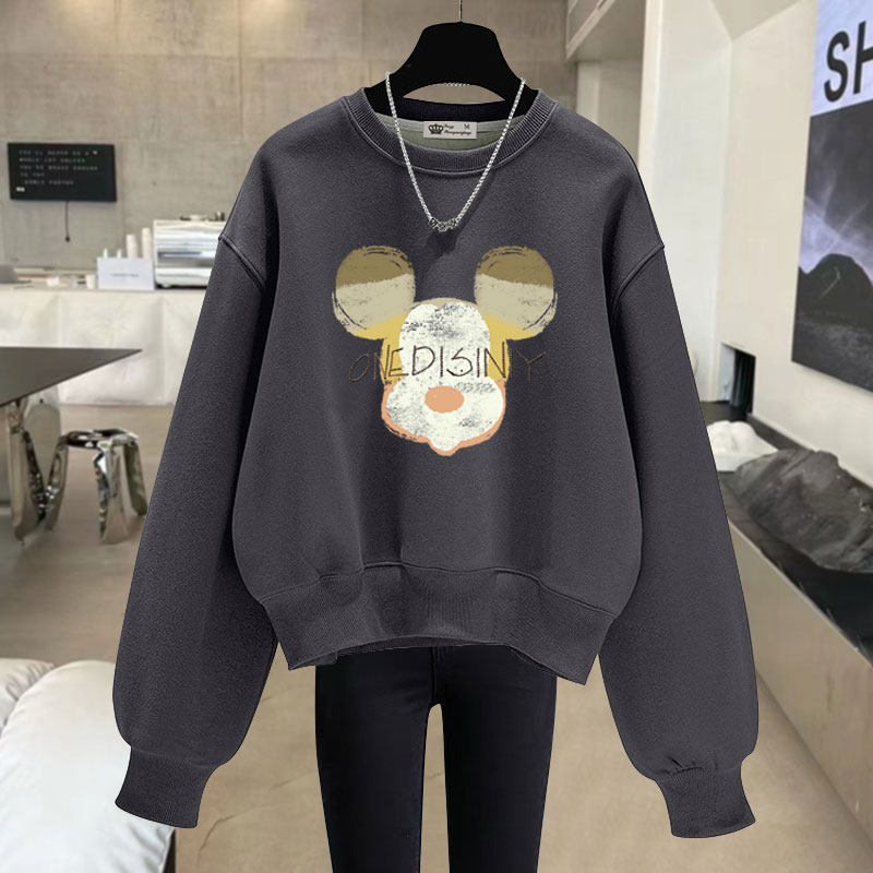 2025春秋冬季米老鼠卡通字母短款加绒加厚宽松套头圆领卫衣女潮