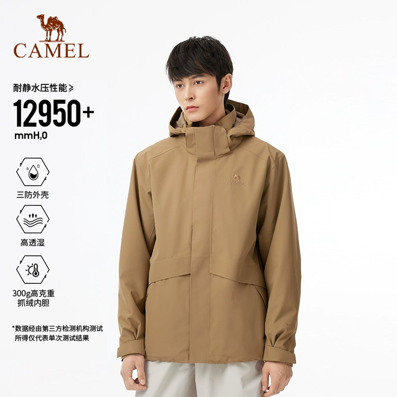 骆驼男装三防三合一冲锋衣男秋冬季2025新款户外防水防风登山服男