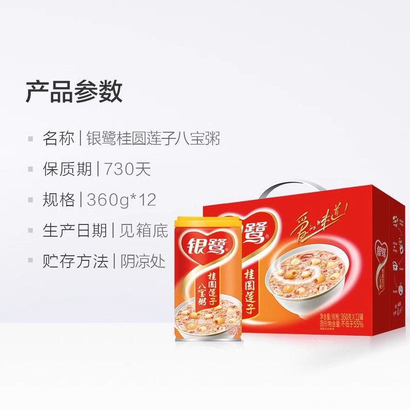 银鹭八宝粥360g桂圆莲子八宝粥低糖木糖醇八宝粥罐整箱装速食早餐