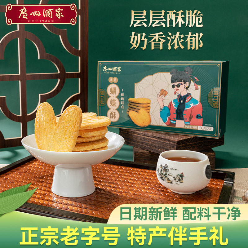 广州酒家利口福广式年货特产红茶果仁蝴蝶核桃酥饼糕点零食伴手礼