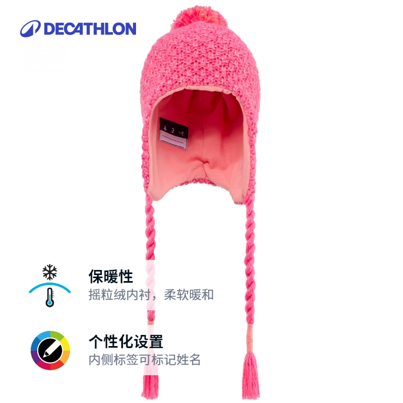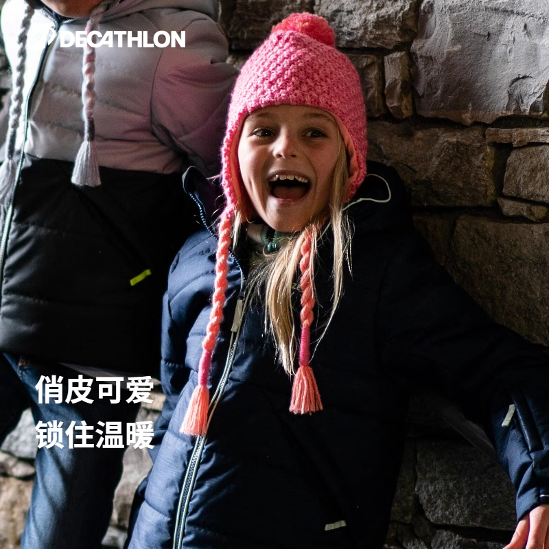 迪卡侬帽子儿童户外滑雪帽青少年保暖辫子帽护耳针织帽 KIDK